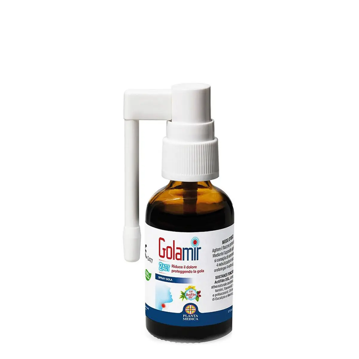 Golamir 2Act spray është një pajisje mjekësore inovative që qetëson dhimbjen dhe acarimin falë veprimit anti-inflamator indirekt dhe mbrojtës në mukozën orofaringeale. Udhëzohet të merret në rastet e dhimbjes së fytit për trajtimin e gjendjeve irrituese dhe inflamatore të zgavrës orofaringeale, ato që mund të shkaktohen nga viruset, bakteret, alergjenët ose nga kontakti me agjentë irritues të jashtëm (tym, smog, pluhur).