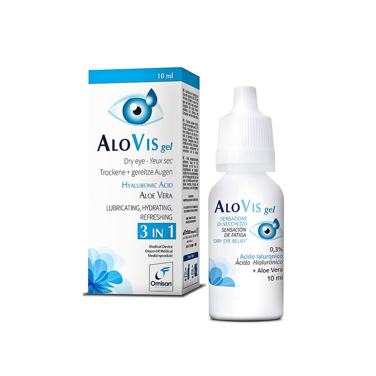 - Përmban acid hialuronik (hyaluronat natriumi) 0.3% – substancë me viskozitet të lartë që nxit hidratimin dhe shërimin e sipërfaqes okulare.