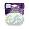 Biberonët qetësues Philips Avent Ultra Soft Nighttime janë krijuar për kujdes maksimal ndaj lëkurës së ndjeshme të foshnjës. Me mburojë të butë dhe fleksibël që përshtatet me format natyrale të fytyrës, ato reduktojnë irritimet dhe shenjat në lëkurë, duke ofruar rehati të vazhdueshme gjatë gjithë ditës dhe natës.