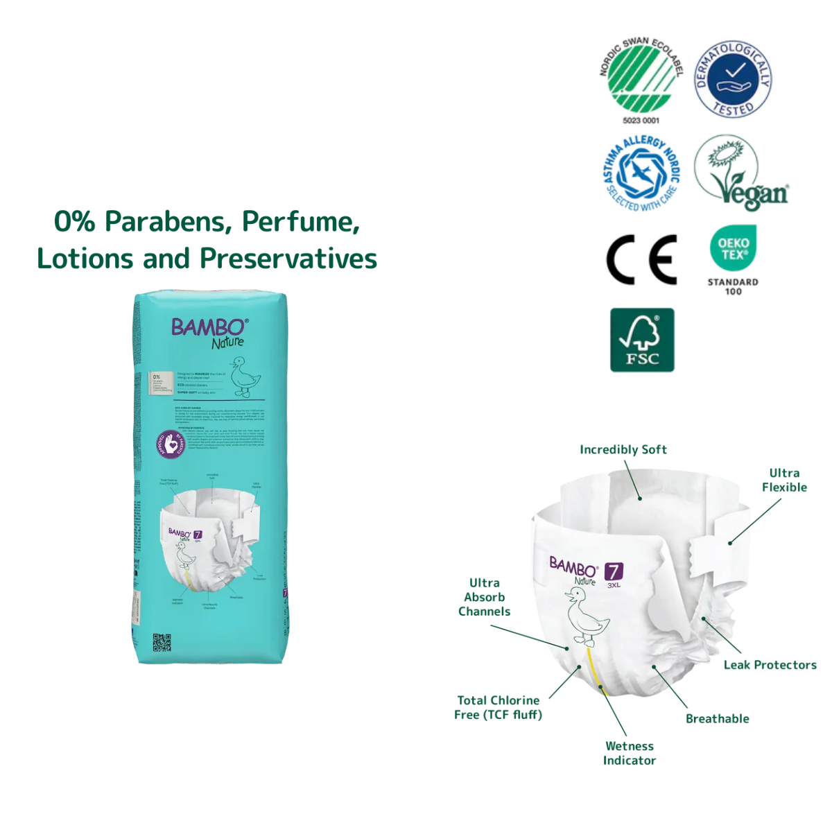Miqësore me lëkurën e të voglit/voglës suaj pa shkaktuar skuqje apo acarrime.Çertifikimi i Bambo nature nga Instituti i Astmës dhe Alergjisë në Danimarkë është siguria juaj që produktet Bambo nature nuk shkaktojnë irritime të lëkurës.
