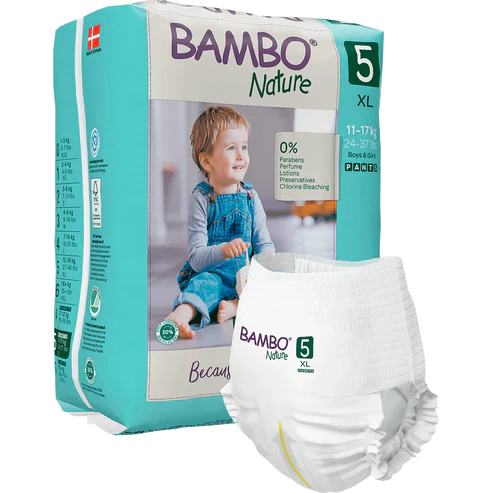 Bambo Nature Pants ofrojnë përshtatje të butë dhe elastike në të gjithë pjesën e belit, janë shumë komode dhe mbajnë të thatë edhe lëkurën më të ndjeshme. Ato vishen dhe hiqen lehtësisht, edhe nga duart e vogla të fëmijëve.