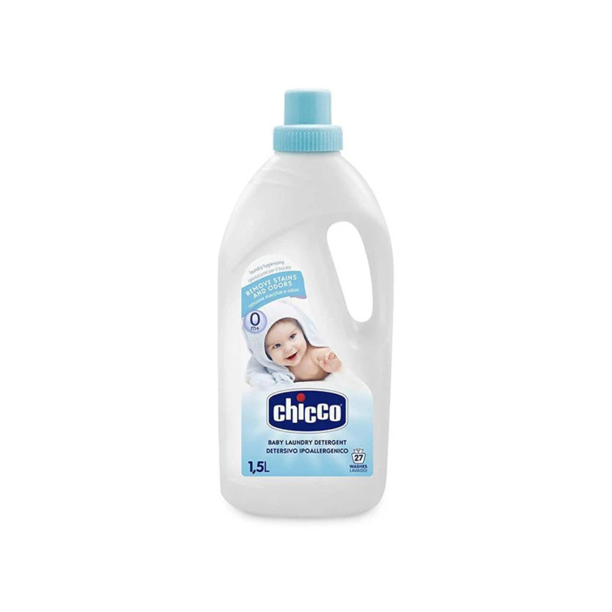 Chicco Baby Laundry Detergent 1.5L është detergjent i posaçëm për larjen e rrobave të bebeve dhe fëmijëve, i formuluar për të respektuar lëkurën shumë të ndjeshme që nga lindja (0m+).