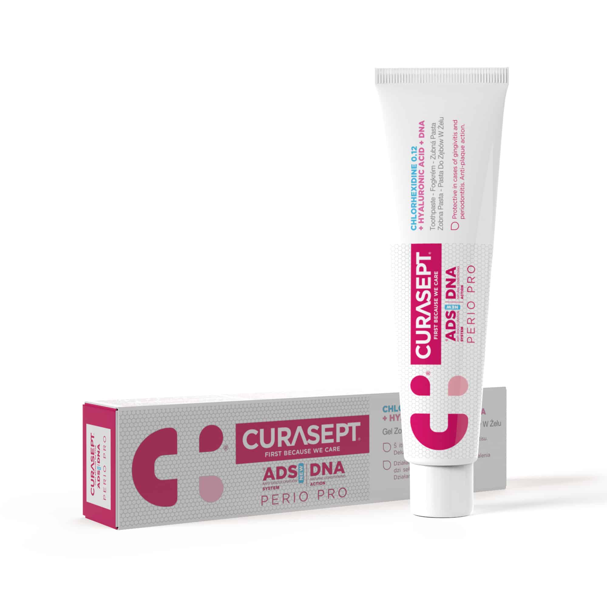 Pasta e dhëmbëve Curasept ADS DNA 712 Perio Pro është krijuar për të garantuar mbrojtje maksimale të mishrave dhe dhëmbëve, duke kombinuar fuqinë antibakteriale të klorheksidinës me kompleksin inovativ DNA, të formuluar posaçërisht për nevojat e kujdesit periodontal.