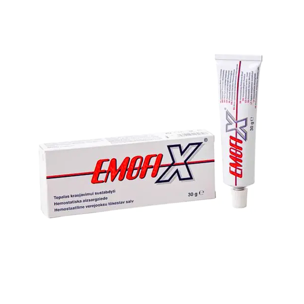 Emofix është një pomadë me veprim hemostatik. Vepron si barriere per frenimin dhe parandalimin e episodeve hemorragjike te lekurës dhe mukozave, te tilla si gjakderdhje nga hunda, te shkaktuara nga plagë të lehta ose traumatike.Ne ditet e para te perdorimit te pomades Emofix mund të keni djegie, kruarje dhe rrjedhje të hundës.