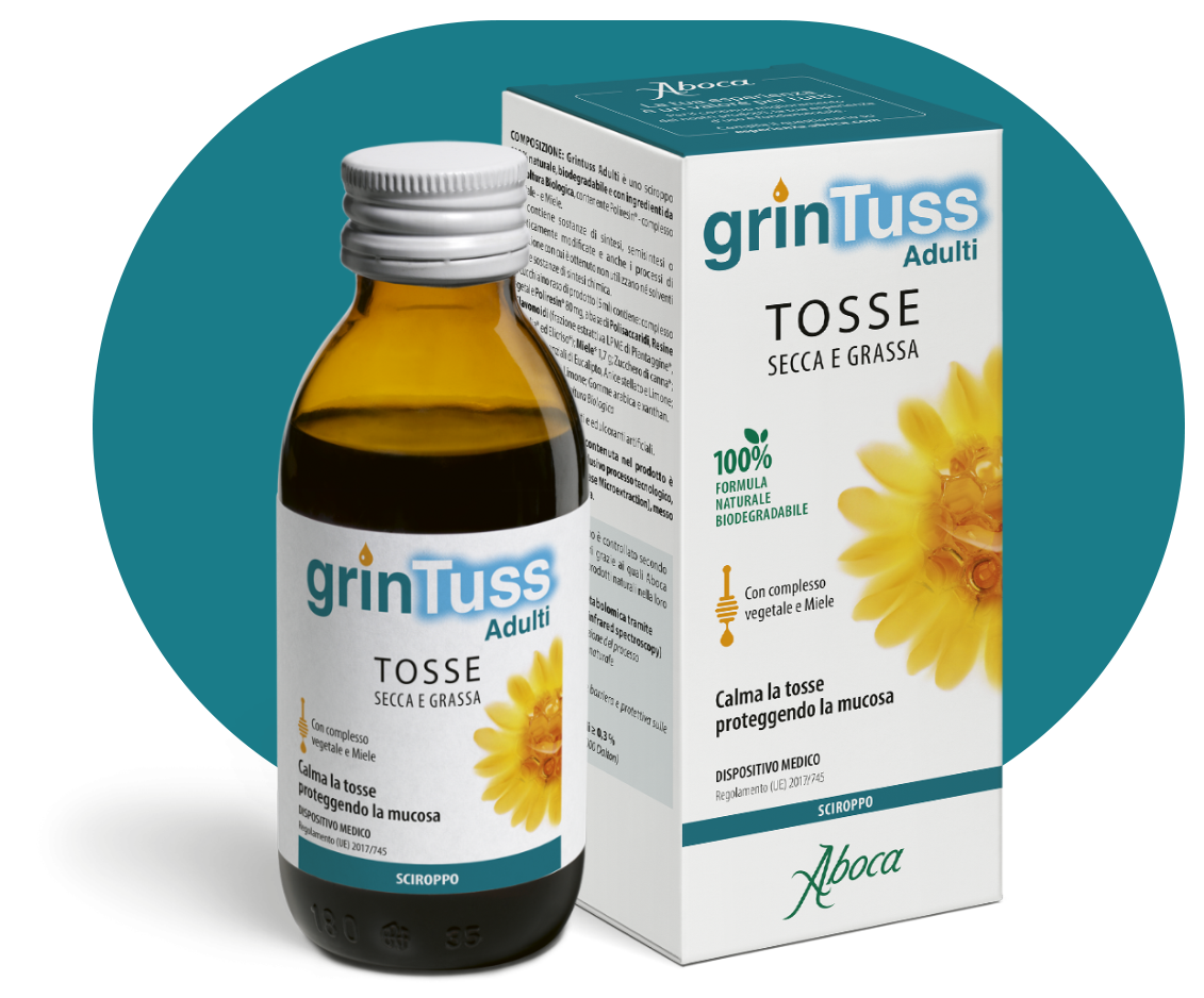 Grintuss është një produkt i bazuar në mjaltë dhe komplekset molekulare që kanë një veprim mbrojtës dhe rrjedhimisht qetësues në rrugët e sipërme të frymëmarrjes. Vepron në kollën e thatë duke iu kundërvënë acarimit të mukozës dhe kollës ,duke favorizuar hidratimin dhe eliminimin e mukusit. Grintuss është një produkt me përbërës nga bujqësia organike, pa gluten dhe me një shije të këndshme.Shurupi pediatrik Grintuss indikohet për trajtimin e kollës, të thatë të fëmijëve dhe të rriturve nga 12 vjeç.