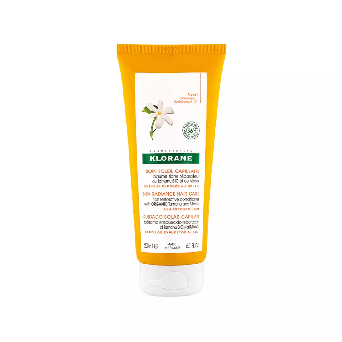 Balsam Klorane me Tamanu Organike dhe Monoï është një balsam i pasur dhe riparues, i krijuar për flokët e ekspozuar ndaj diellit. Falë përbërësve si keratina bimore, ai ushqen në thellësi, riparon dhe mbron flokët nga dëmtimet e shkaktuara nga dielli, rëra ose klori.
