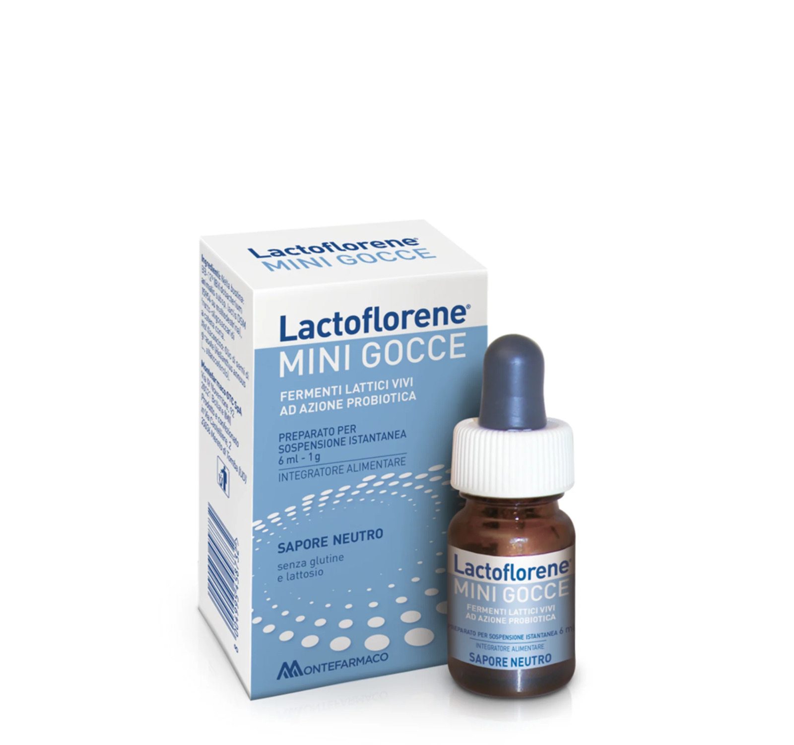 Lactoflorene Mini Gocce është një shtesë ushqimore e bazuar në fermente laktike të gjalla me veprim probiotik që favorizon ekuilibrin e florës bakteriale të zorrëve. Shija e saj neutrale e bën të përshtatshme për përdorim tek foshnjat dhe të gjithë fëmijët, si dhe tek të rriturit që nuk tolerojnë aroma shumë intensive dhe kanë vështirësi në gëlltitje.