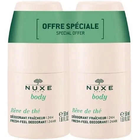 Një deodorant aromatik që parandalon aromat e pakëndshme deri në 24 orë. Tekstura nuk ngjit dhe është gjithashtu aromatike, e pasuruar me notat e NUXE Body Rêve de Thé Exalting Fragrant Water.