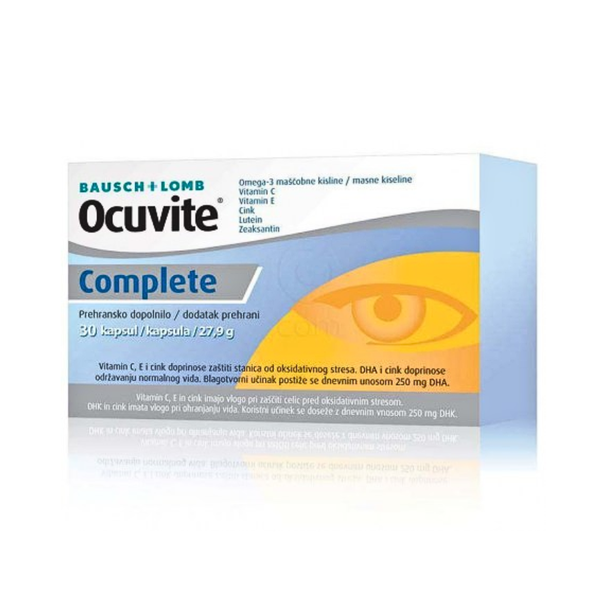 Ocuvite Complete është një shtesë ushqimore që është zhvilluar nga specialistët kryesorë të kujdesit për sytë Bausch + Lomb. Të gjithë përbërësit ofrohen nga furnitorë premium për të garantuar cilësi optimale.