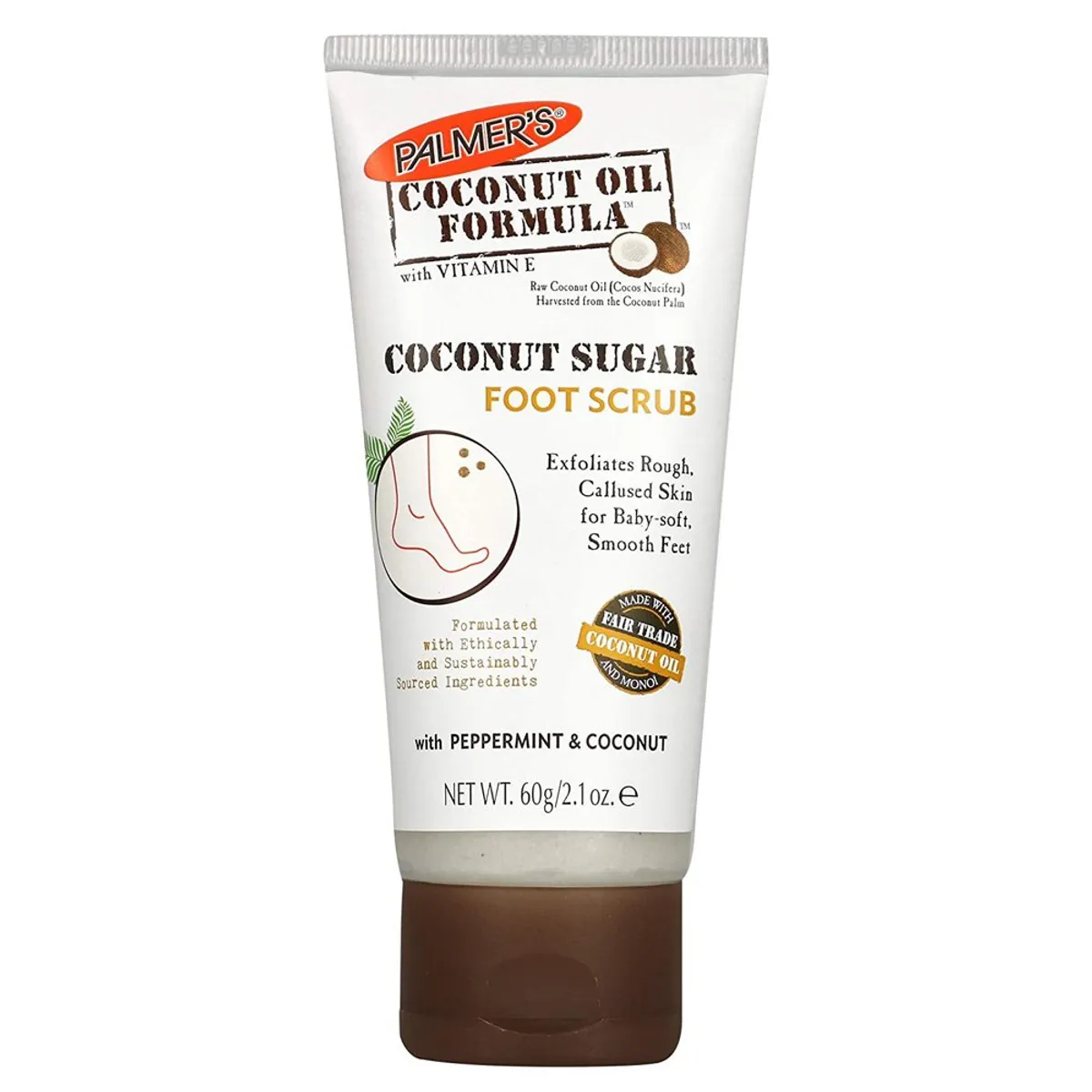 Skrabi për këmbë me formulë vaji kokosi Palmer’s® përdor sheqer kokosi natyral dhe vaj menteje për të eksfoliuar dhe lëmuar lëkurën e ashpër dhe të kallozuar, për këmbë të lëmuara dhe të buta si të një fëmije.