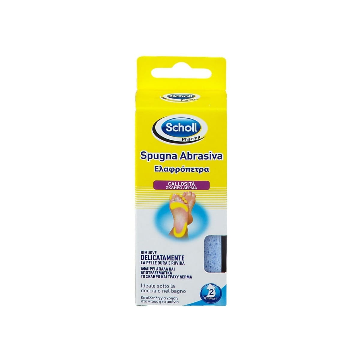 Përdorimi: Kalojeni sfungjerin mbi zonat e ashpra të këmbës. Ideale për përdorim edhe gjatë dushit ose banjës.