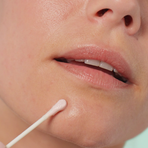 Zhytni një shtupë pambuku në shishe derisa të arrijë pluhurin, më pas aplikojeni për papërsosmëritë e synuara. Shmangni zonën e syve.