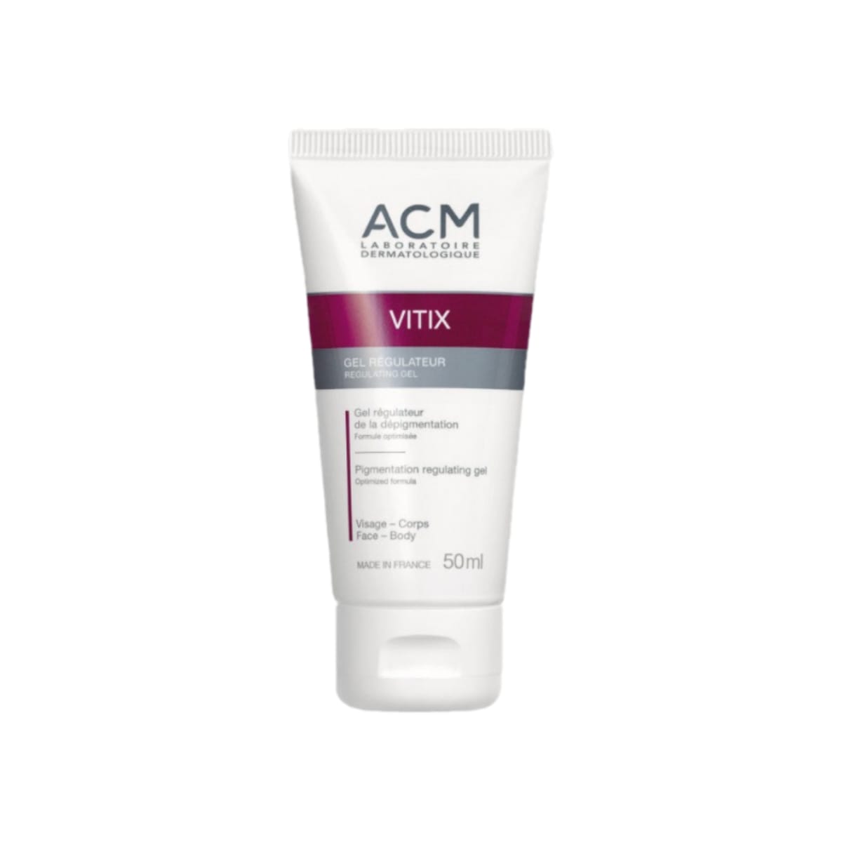 ACM Laboratoire Vitix Regulating Gel është një trajtim specifik për përdorim të përditshëm, i destinuar për stimulimin e prodhimit të melaninës në zonat e depigmentuara të prekura nga vitiligo. Formula e tij kombinon një ekstrakt të patentuar të pjeprit, të pasur me antioksidantë, me një mekanizëm inovativ veprimi kundër radikaleve të lira.
