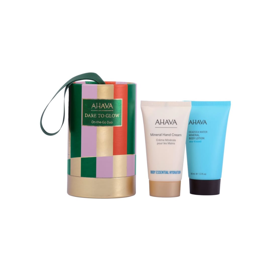 AHAVA On-the-Go Duo është një set ideal për hidratim të duarve dhe trupit, perfekt për t’u përdorur kudo gjatë ditës. Ky duo i vogël kombinon tekstura të lehta me mineralet e Ujit të Detit të Vdekur për lëkurë të butë dhe të ushqyer.