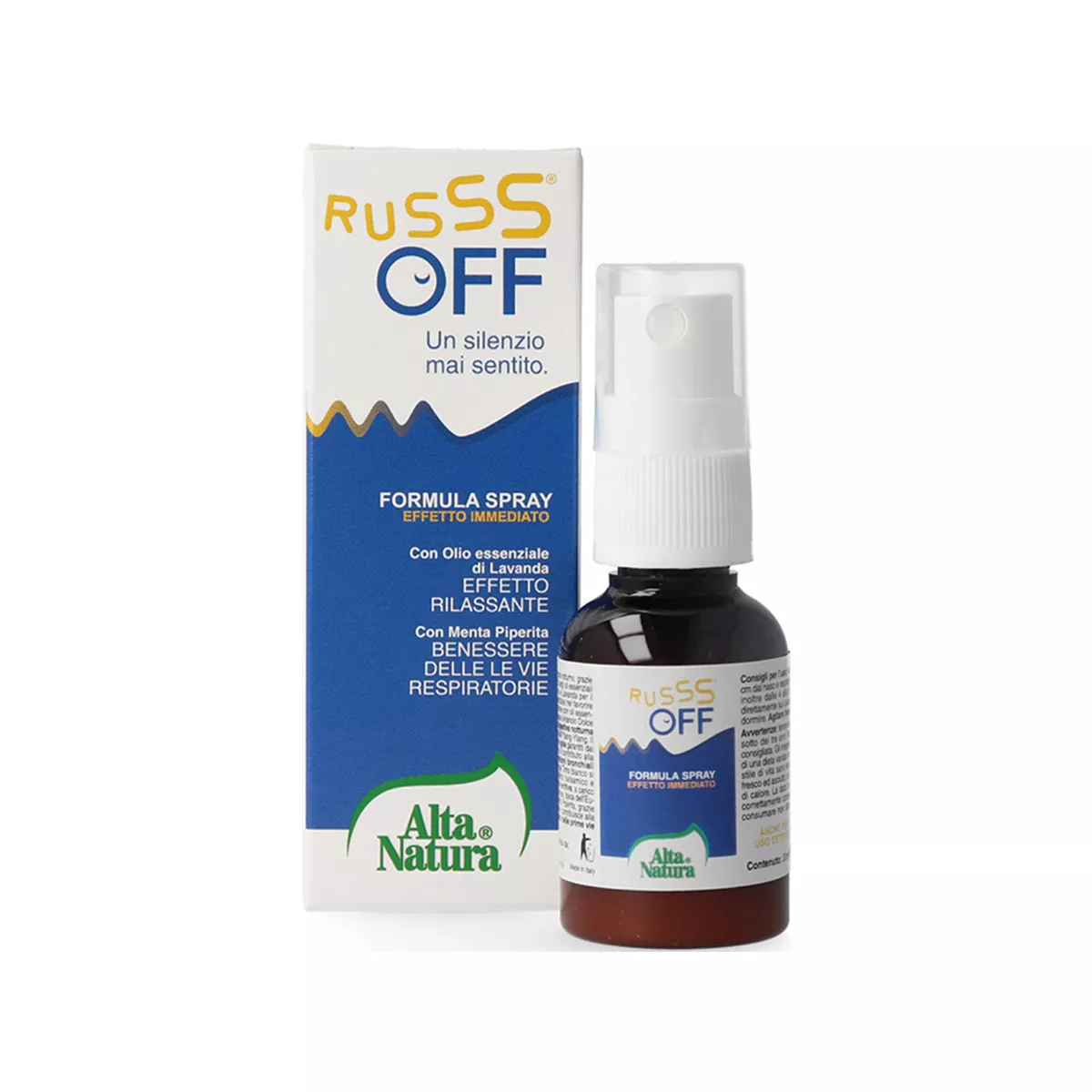 Alta Natura Russ Off, është një shtesë ushqimore e bazuar në vajra esencialë në format spray. Falë përbërsve të saj është efektiv në luftimin e simptomave të gërhitjes, çrregullimeve të gjumit dhe kontribuon në funksionimin normal të frymëmarrjes.