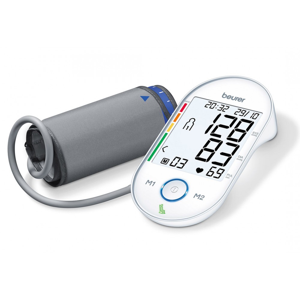 Aparat për matjen e tensionit me tregues të vlerës se tensionit “në pushim” të patentuar dhe karakteristika të tjera të dobishme, të tilla si ekrani i bardhë i ndriçuar XL sensori me prekje, ofron siguri dhe cilësi maksimale për matjen e tensionit të gjakut. Ndërfaqja e PC dhe kabllo USB lejojnë që vlerat e matura të transferohen lehtësisht në PC dhe të menaxhohen me programin falas “beurer HealthManager”.