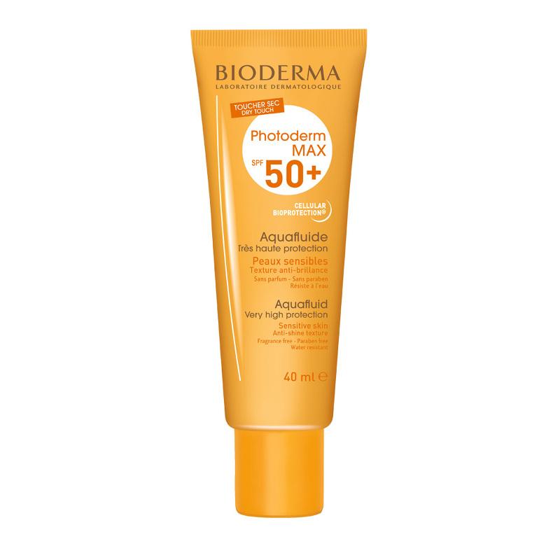 Bioderma Photoderm Max SPF 50+ Aquafluid është një fluid me mbrojtje shumë të lartë i përshtatshëm për lëkura të ndjeshme ose lëkura intolerante ndaj ekspozimit në diell, lëkura të çelëta me quka, lëkura të ekspozuara në intensitet të lartë të diellit (mal, tropik). Është i përshtatshëm për lëkura mikse në të yndyrshme.