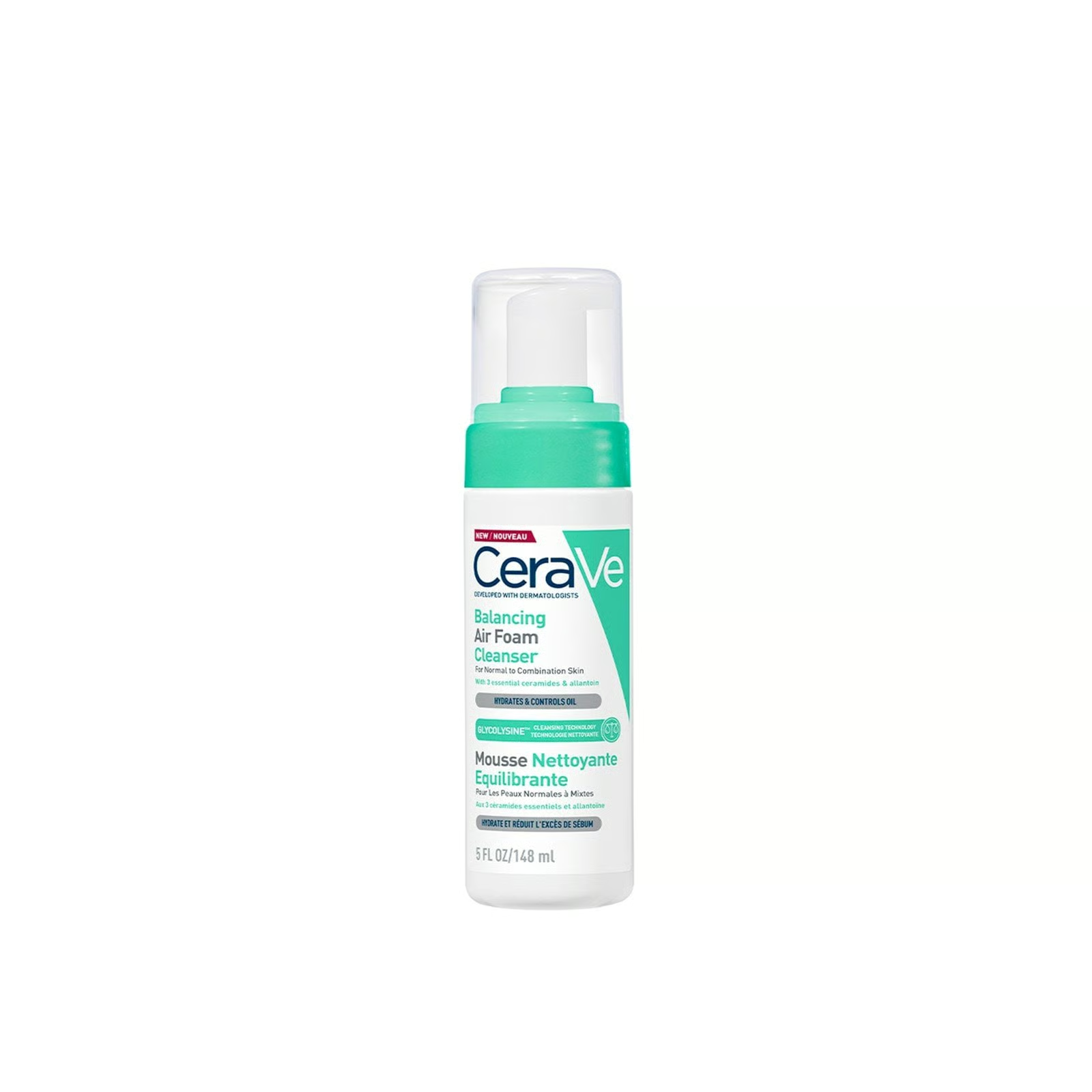 Pastruesi i fytyrës CeraVe Balancing Air Foam është një pastrues shkumë, i projektuar për t’u kujdesur për lëkurën normale deri në të kombinuar – veçanërisht për ato që menaxhojnë sebumin dhe thatësinë e lëkurës në të njëjtën kohë. Ky pastrues fytyre me shkumë pa aromë, jo-komedogjenik, heq butësisht papastërtitë dhe yndyrën pa prishur barrierën natyrore të lëkurës suaj. I mundësuar nga Teknologjia inovative e Pastrimit Glycolysine™, pastron butësisht për të ndihmuar në kontrollin e yndyrës, plus hidratim 24-orësh në një shkumë të lehtë dhe të freskët.