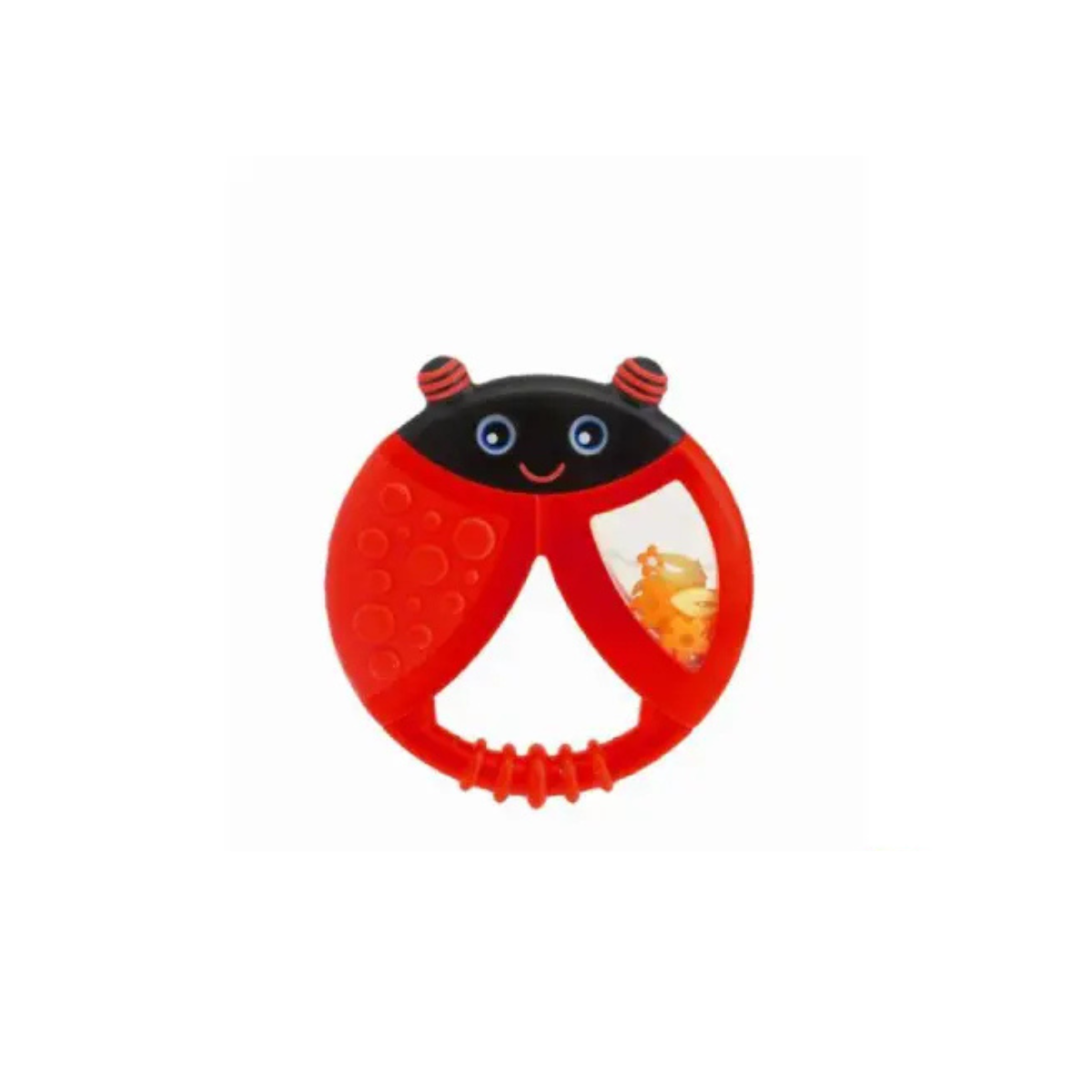 Dizajni shumëngjyrësh dhe forma argëtuese me fytyrë miqësore ndihmojnë në zhvillimin vizual dhe motorik, ndërsa elementi transparent me figura të brendshme tërheq vëmendjen e bebes.