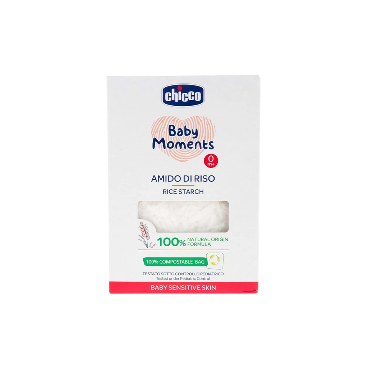 Chicco Baby Moments Amido di Riso është një produkt natyral me niseshte orizi, i formuluar posaçërisht për lëkurën shumë delikate të foshnjave që nga lindja (0m+).
