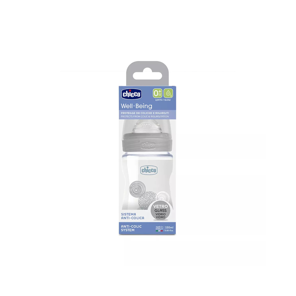 Chicco Well-Being biberon qelqi është i projektuar për foshnjat që nga lindja (0m+), duke ofruar ushqyerje të sigurt, natyrale dhe komode. I pajisur me sistem anti-kolik, ndihmon në reduktimin e kolikave, gazrave dhe rigurgitimit gjatë ushqyerjes.