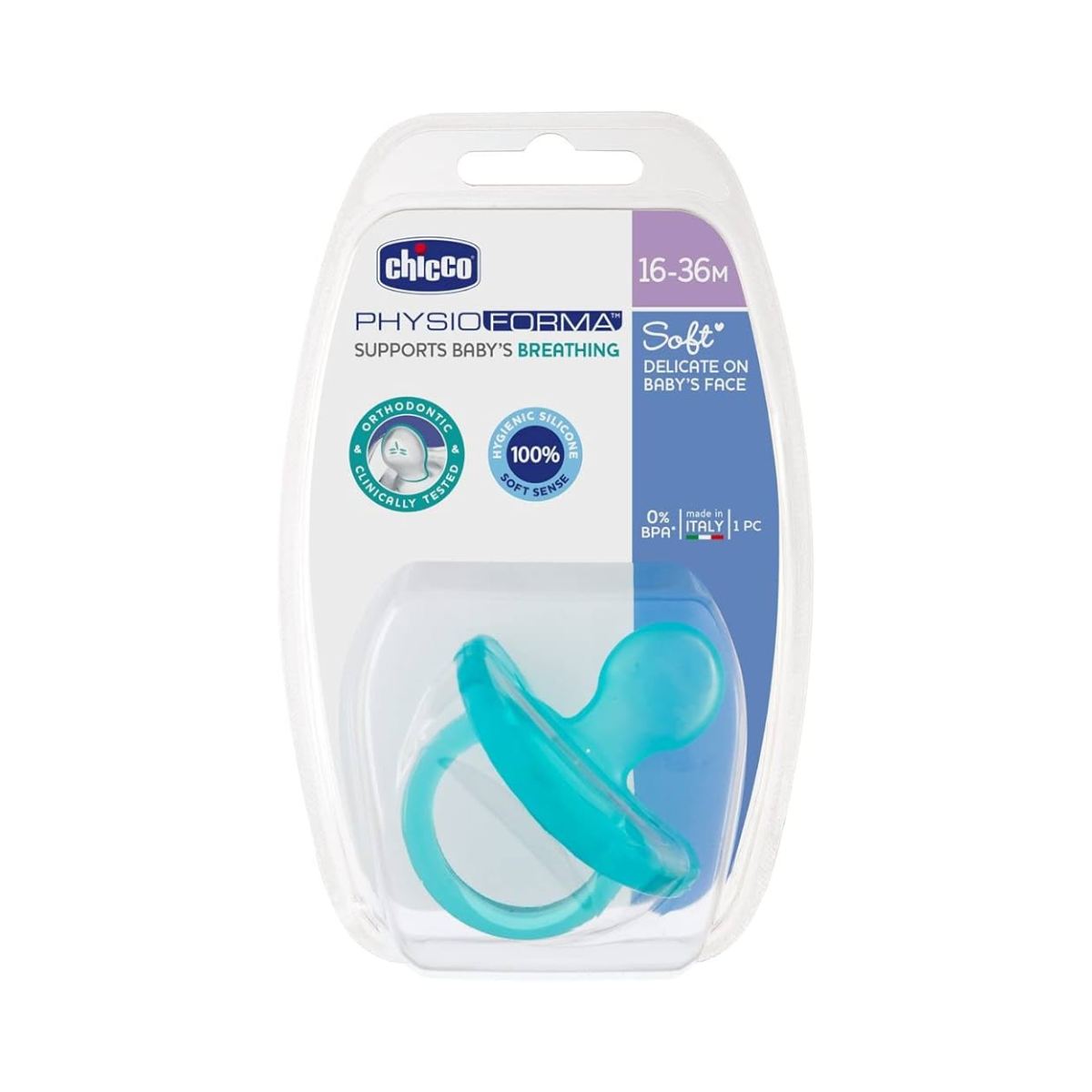 Chicco Physio Soft është një biberon i projektuar posaçërisht për foshnjat 16-36 muaj, i realizuar plotësisht prej silikoni të butë, për rehati maksimale gjatë ditës dhe natës.