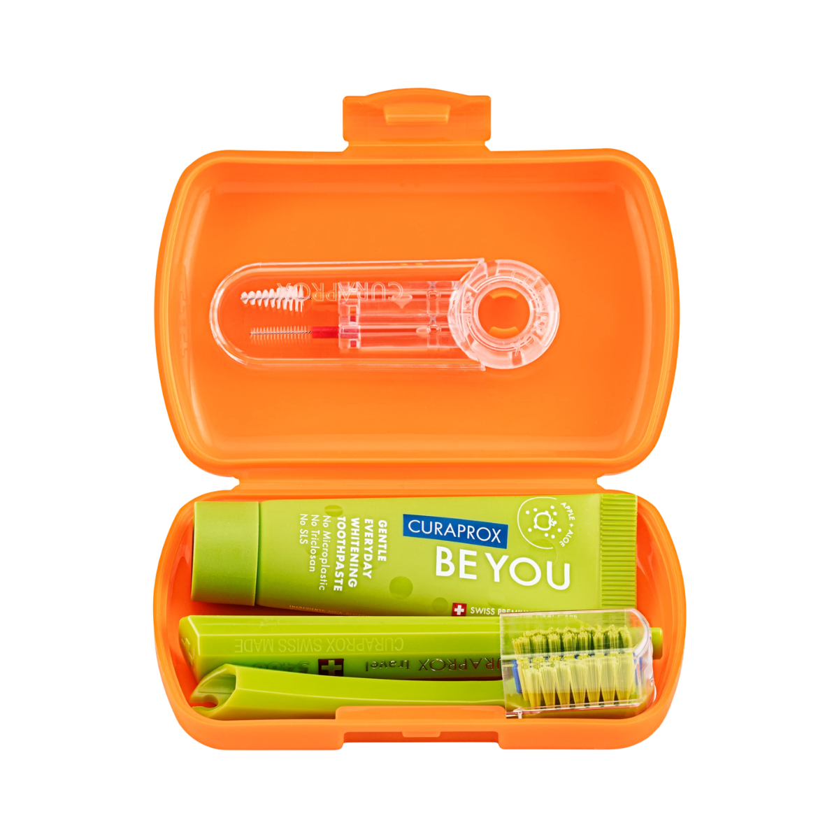 Përmban furcë ultra soft CS 5460, pastë dhëmbësh CURAPROX BE YOU 10ml dhe 2 furca ndërdhëmbore.
