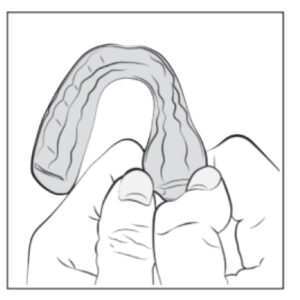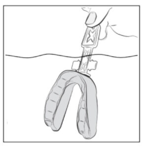 - Pas një minute hiqeni aparatin nga goja dhe shpëlajeni me ujë të ftohtë për rreth 2 minuta. Tashmë aparati është gati për përdorim i përshtatur me formën tuaj të gojës.