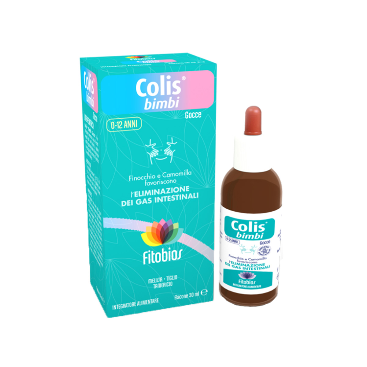 Colis Bimbi është një suplement ushqimor i nevojshëm për të nxitur eliminimin e gazrave të zorrëve dhe lëvizshmërinë e rregulltë gastrointestinale falë pranisë së koprës, kamomilit dhe barit të bletës (Melissa officinalis).