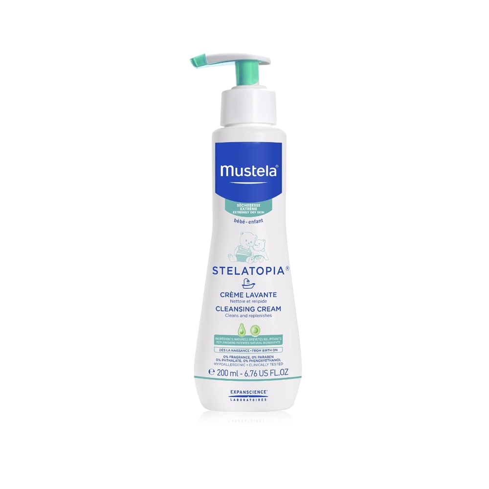 Që nga dita e parë e lindjes, aplikojeni mbi lëkurë të lagur. Lajeni trupin dhe fytyrën dhe më pas shpëlajeni. Thajeni butësisht, pa e fërkuar lëkurën dhe më pas aplikoni Crème Émolliente Stelatopia®. Mund të përdoret çdo ditë dhe në periudhën e shpërthimit të dermatitit atopik.