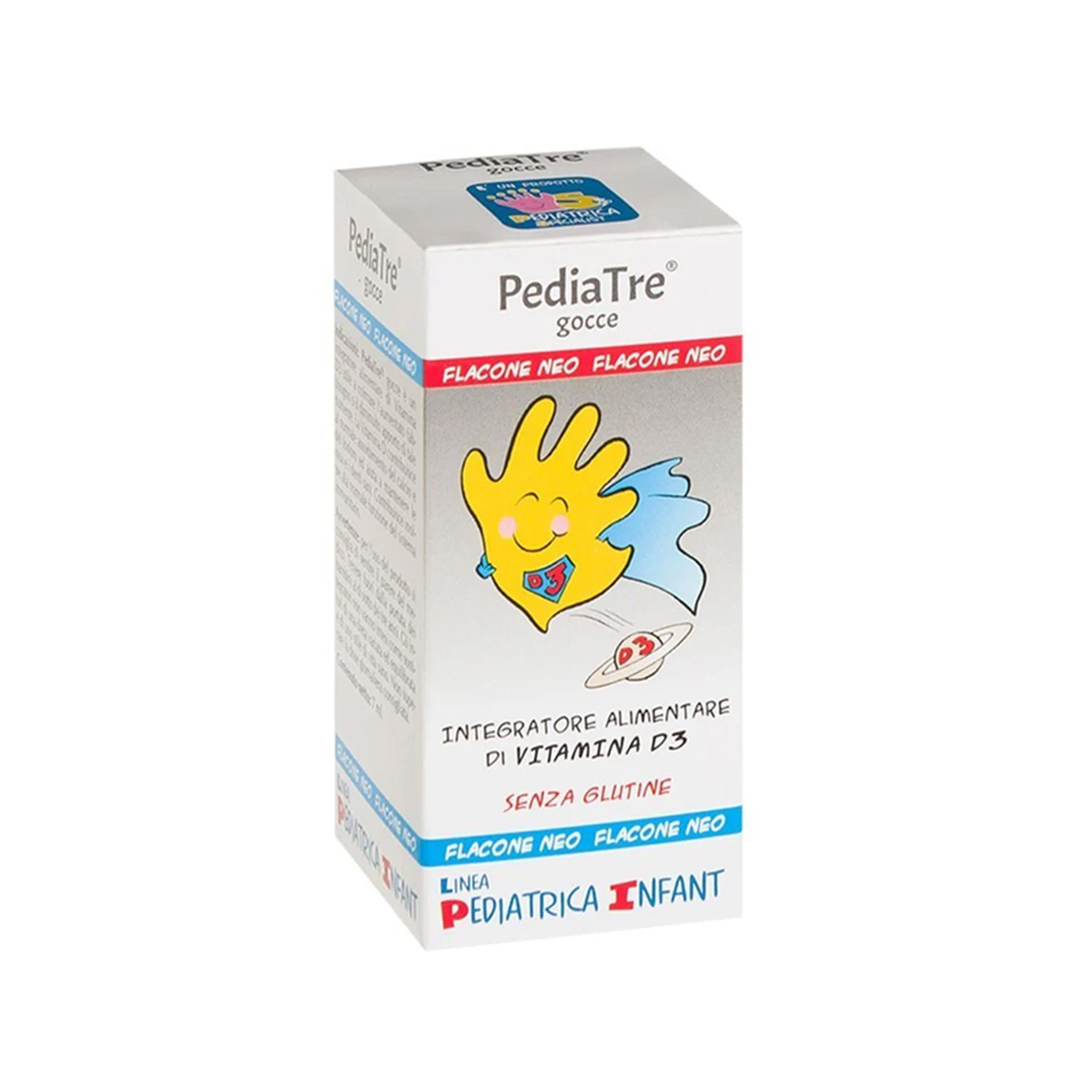 PediaTre Gocce është një suplement ushqimor i vitaminës D3, i nevojshëm në rastet kur rritet nevoja për vitaminë D në organizëm ose kur nuk plotësohet nevoja ditore për të nga dieta ushqimore. Vitamina D kontribuon në përthithjen normale të kalçiumit dhe fosforit, si dhe në mbajtjen e kockave dhe dhëmbëve të shëndetshëm.