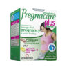 Pregnacare Plus ofron një paketim të dyfishtë ku përfshihen vitaminat esenciale për shtatzani ku përfshihen dozat e rekomanduara të acidit folik 400mcg dhe 10mcg vitaminë D siç këshillohet nga Departamenti i Shëndetit në Angli, përgjatë shtatzanisë dhe ushqyerjes me gji, plus kaspulat me Omega-3 që ofrojnë një burim të pasur të DHA (acidi docosahexaenoic) i cili kontribuon në zhvillimin normal të trurit dhe syve tek fetusi.