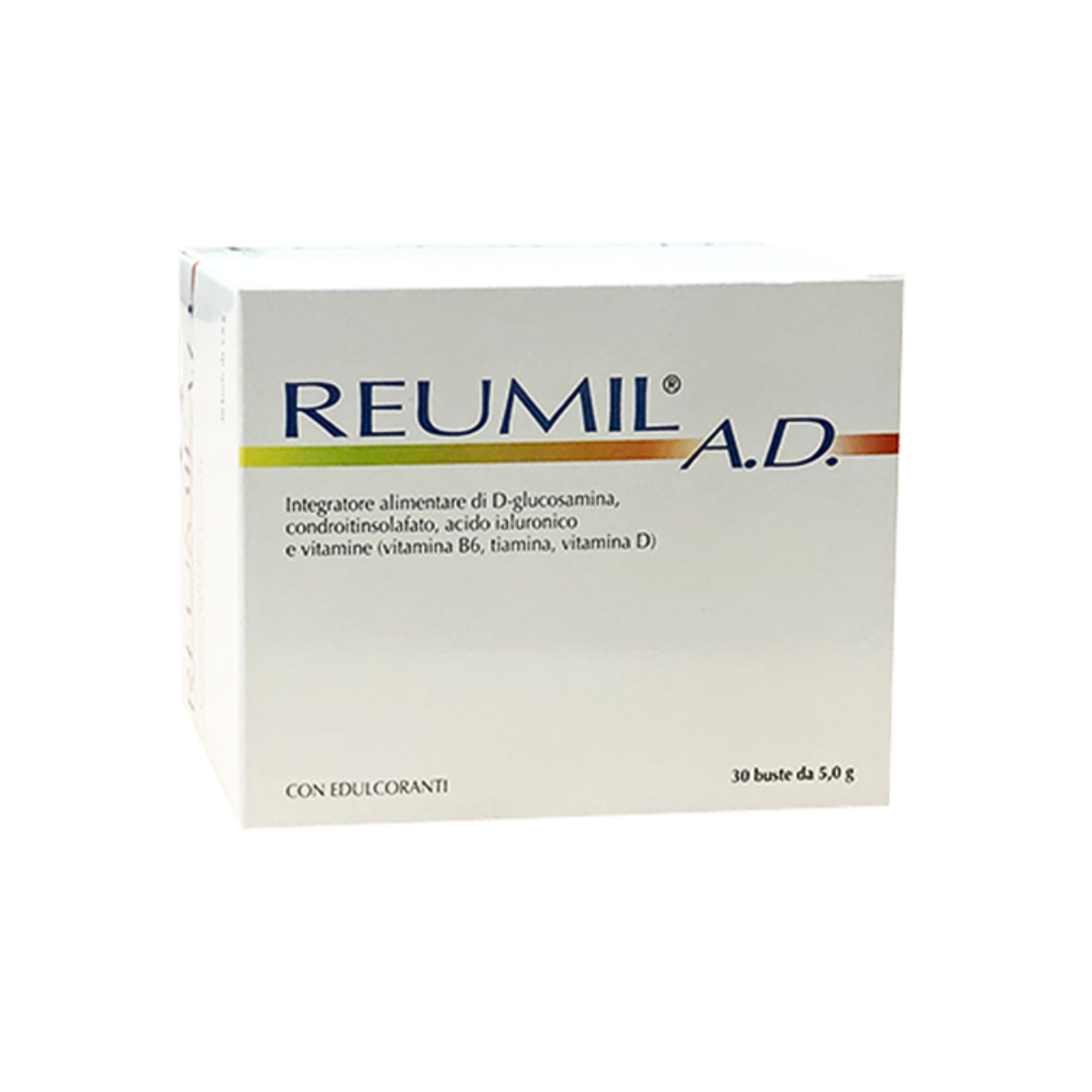 Reumili A.D. fale permbajtjes se larte dhe te ekuilibruar te sulfatit te glukozamines dhe te kondraitines, i mundeson artikulacioneve lenden e domosdoshme per permiresimin e gjendjes biokimike duke favorizuar rikonstruktimin e kartilagove. Reumili A.D. eshte i dobishem ne korrigjimin e trofise kartilagenoze si dhe favorizon korigjimin e osteoartrozave me prejardhje te ndryshme: