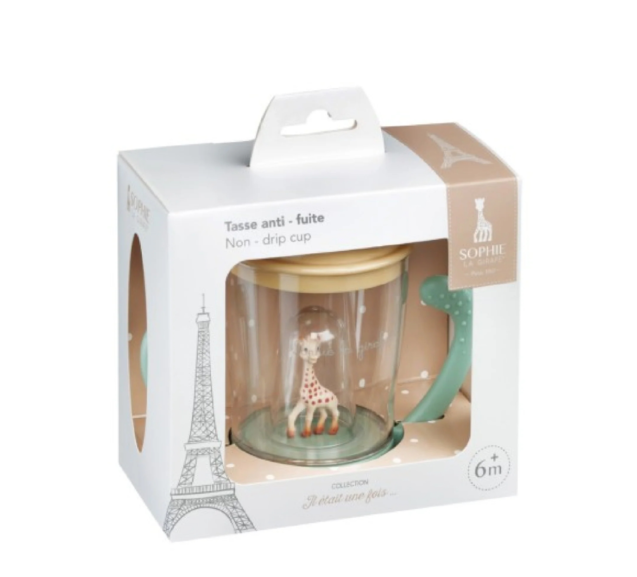 Gota transparente pa derdhje Sophie La Giraffe, Peek-A-Boo, është zgjidhja perfekte për prindërit që kërkojnë një mënyrë të përshtatshme dhe pa rrëmujë për të ushqyer të vegjlit e tyre. E bërë me një dizajn unik kundër rrjedhjeve, ky filxhan lejon fëmijën tuaj të pijë pa derdhur, duke e bërë atë të përsosur për përdorim në lëvizje. Një figurë e Sophie la girafe ulet brenda filxhanit, duke argëtuar fëmijën tuaj. Gryka është e butë me mishrat dhe dhëmbët e foshnjës, ndërsa dorezat e kapshme e bëjnë të lehtë për t’u mbajtur nga duart e vogla.
